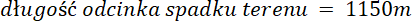 Liczymy go, mierząc linijką długość spadku na mapie, następnie wiedząc, że 1 cm na mapie odpowiada 500 m w rzeczywistości, wyliczamy długość z proporcji. Na koniec podstawiamy wszystkie dane do wzoru.