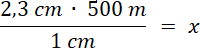 Odcinek na mapie mierzy 2,3 centymetra, a jednemu centymetrowi odpowiada 500 metrów.