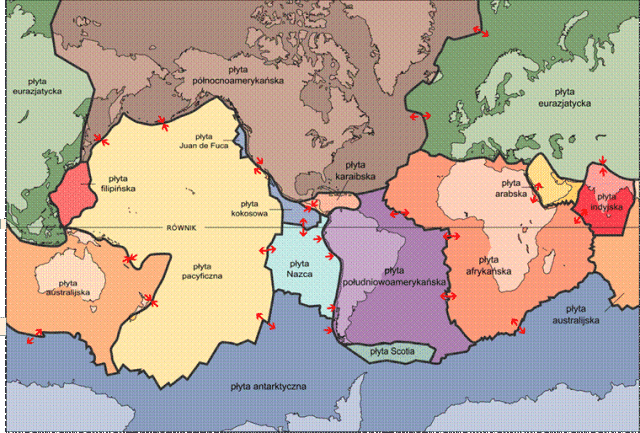Granice płyt litosfery przedstawia powyższy obrazek.