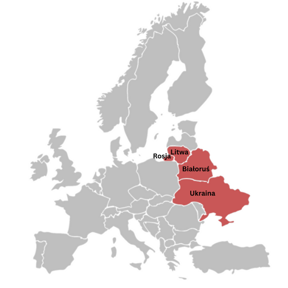 Białoruś, Litwa, Łotwa, Estonia, Mołdawia, Ukraina, Rosja