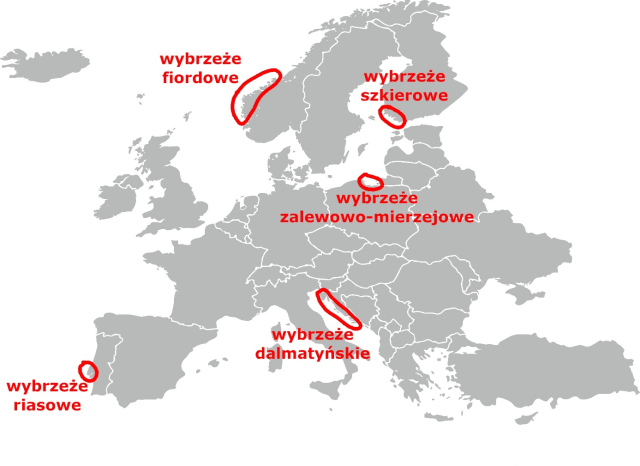 Wybrzeże fiordowe – powstaje w wyniku zalania przez morze dolin polodowcowych.