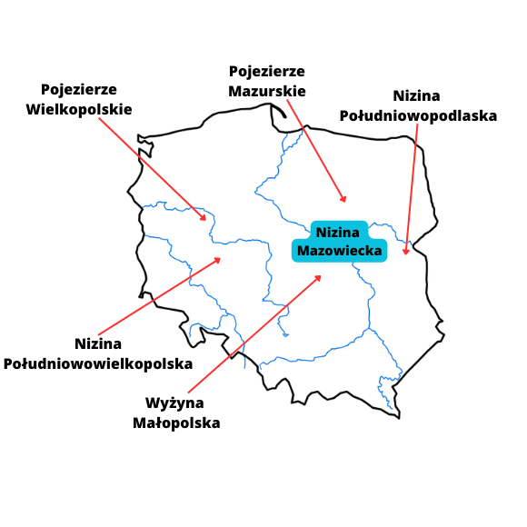 W tym zadaniu musisz odszukać na mapie Polski Nizinę Mazowiecką oraz pozostałe krainy geograficzne, które z nią sąsiadują.