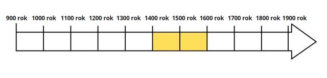 Zamaluj na taśmie chronologicznej wiek XV i XVI, czyli czasy renesansu.