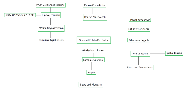 W tym zadaniu powinieneś narysować mapę myśli, której tematem będą stosunki polsko-krzyżackie w XIII-XV w.