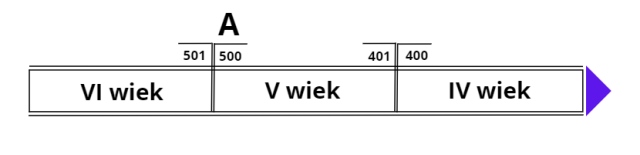 Zaznacz na osi czasu literą A – pierwszy rok V wieku p.n.e.