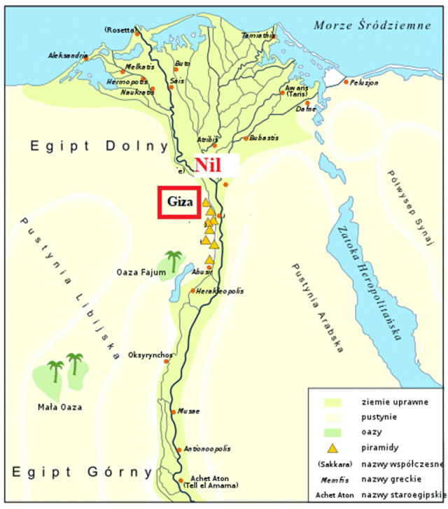 Zaznacz na mapie miasto, w którym powstały najsłynniejsze piramidy.