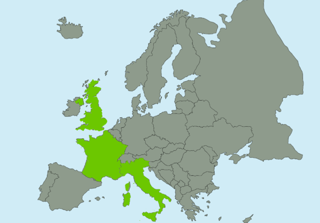 Do Wielkiej Czwórki zaliczano Stany Zjednoczone, Wielką Brytanię, Francję oraz Włochy. Jako że Stany Zjednoczone nie leżą w Europie, to oczywiście nie znajdują się na podanej mapie.