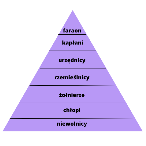 · faraon – najważniejsza osoba w państwie, posiadał nieograniczoną władzę nad poddanymi, ustanawiał prawa, najwyższy kapłan i sędzia, zwierzchnik wojska;