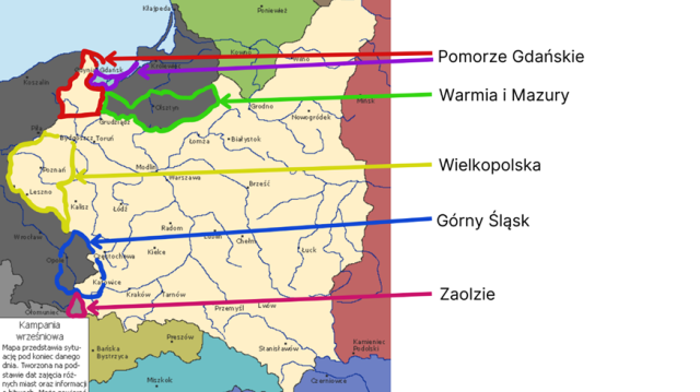 | Warmia i Mazury | Plebiscyt | 3,3% głosów za Polską, mały obszar sporny |