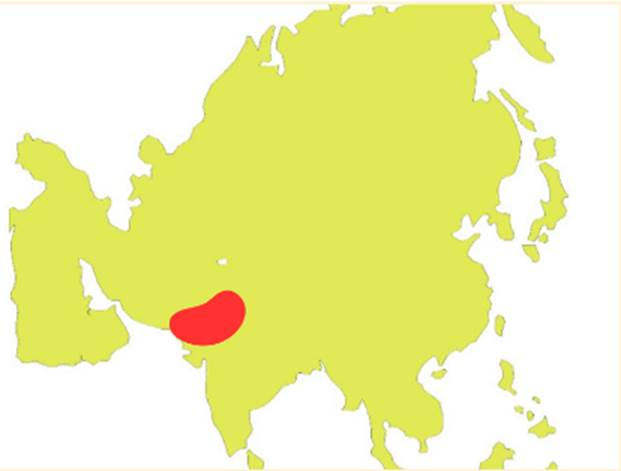 Użyj czerwonego koloru, aby oznaczyć teren, na którym rozwijała się cywilizacją wzdłuż Indusu.