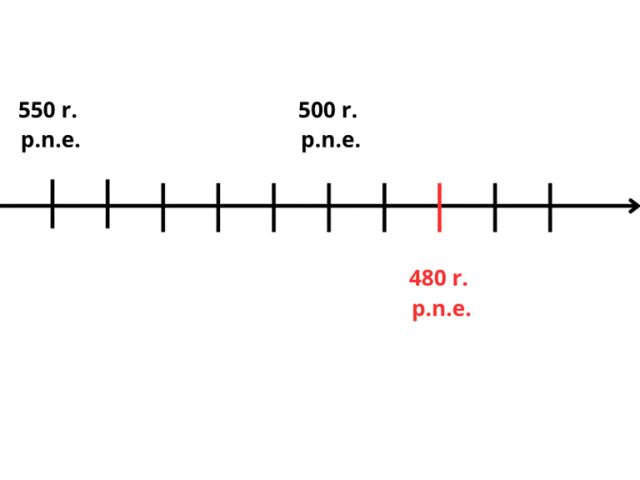 Zwróć uwagę na fakt, że oś przedstawia lata przed naszą erą. Oznacza to, że rok 480 będzie znajdował się po prawej stronie zaznaczonego na osi roku 500, a nie po lewej, tak jak na osi liczącej lata naszej ery.