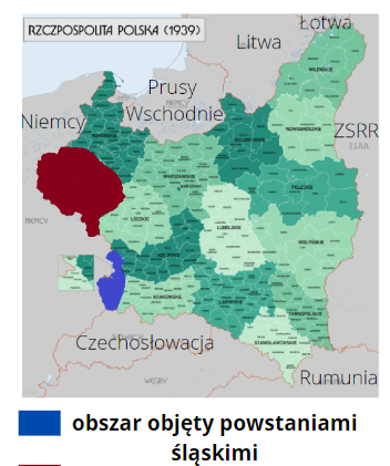 Zamaluj na mapie obszar, gdzie wybuchły trzy powstania śląskie. Uzupełnij legendę mapy.