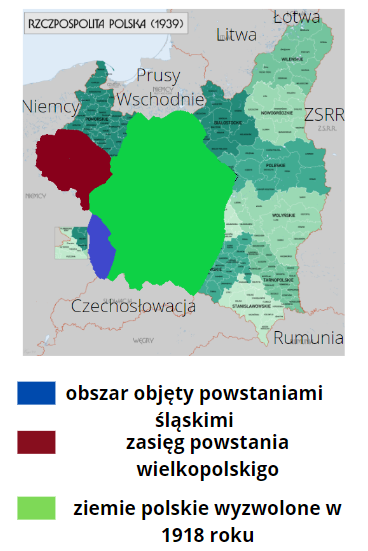 Zamaluj na mapie obszar, który należał do Polski w 1918 roku. Uzupełnij legendę mapy.
