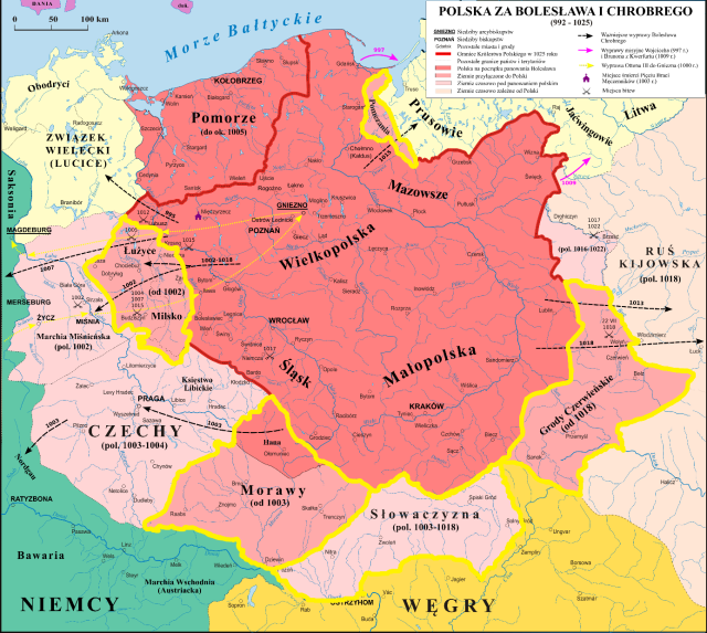 Bolesław Chrobry podbił wiele nowych obszarów, które włączyć do swego państwa, między innymi: Łużyce i Milsko, Morawy, Słowację, Grody Czerwieńskie, Pomezanię.