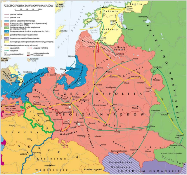 źródło: Wojna Północna, Krystian Chariza i zespół, Rzeczpospolita za panowania Sasów, licencja CC, zmienione.