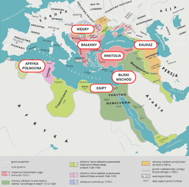 źródło: Contentplus.pl na podstawie Wikimedia Commons, Ekspansja turecka w XVI w., licencja CC, zmienione.