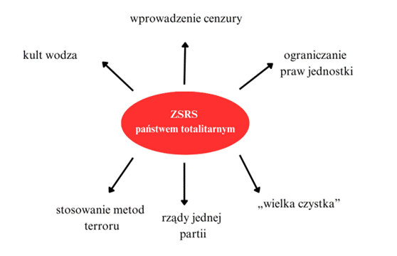 Po przejęciu władzy Józef Stalin zaczął stosować metody terroru. W ZSRS panował totalitaryzm, czyli system rządów, w którym państwo wpływa na całe życie publiczne i prywatne obywateli i narzuca jedną ideologię.