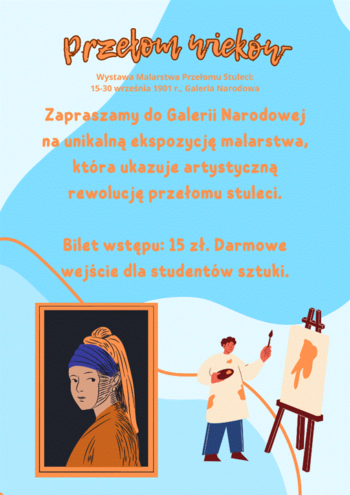 Korzystając z takich programów jak Canva lub Paint lub innych technik artystycznych przygotuj plakat informujący o evencie kulturalnym.