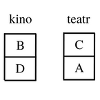 W tym zadaniu spójrz na poniższe rysunki i pomyśl sobie jakie różnice są między kinem a teatrem. Następnie dobierz odpowiednie sformułowanie do każdego rysunku.
