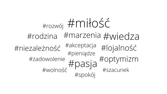 Zaprezentuj w formie chmury tagów najistotniejsze dla ciebie wartości. Możesz użyć podanych sformułowań lub własnych propozycji. Podaj uzasadnienie swojego wyboru.