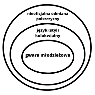 O związku pomiędzy trzema zbiorami językowymi dowiadujemy się w akapicie 1. Gwara językowa jest odmianą „wyrastającą z polszczyzny potocznej […], a więc ze stylu zwanego kolokwialnym”.