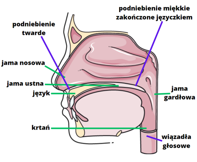 Na schemacie wskaż najważniejsze narządy mowy.