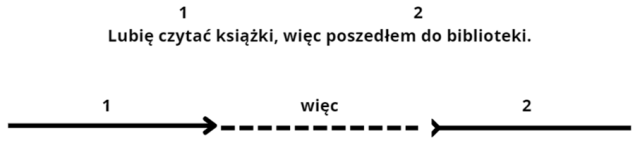 Lubię czytać książki, więc poszedłem do biblioteki. – zdanie współrzędnie złożone wynikowe
