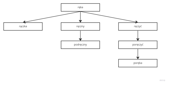 Stwórz wykres rodziny wyrazów od słowa ręka.