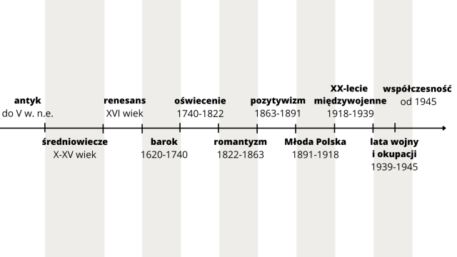 Napisz notatkę o epokach literackich. Powinna być w formie graficznej. Pamiętaj o zaznaczeniu czasu trwania każdej z epok.