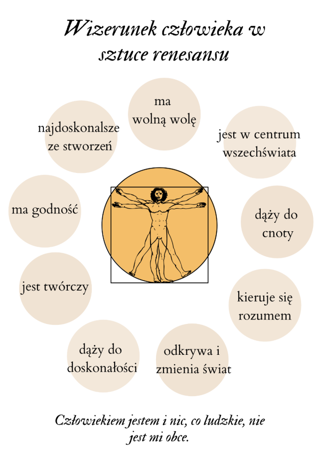 Stwórz plakat, na którym przedstawisz, jak widziano człowieka w literaturze i sztuce renesansowej.