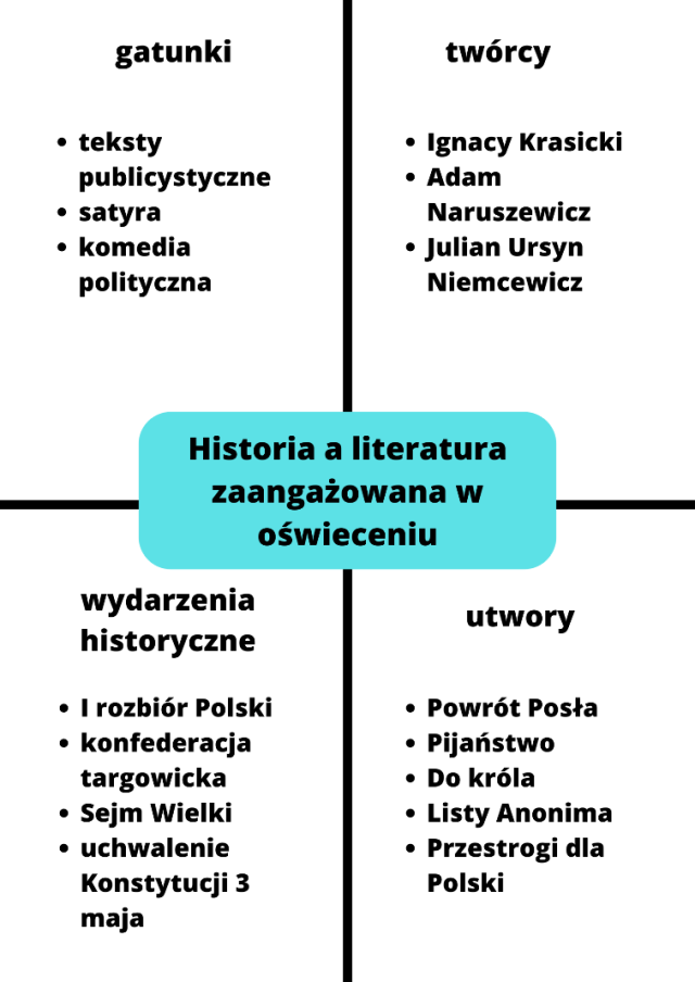 Zastanów się, jakie czynniki historyczne wpłynęły na ukształtowanie się literatury społecznie zaangażowanej w oświeceniu. Stwórz plakat obrazujący to zagadnienie.