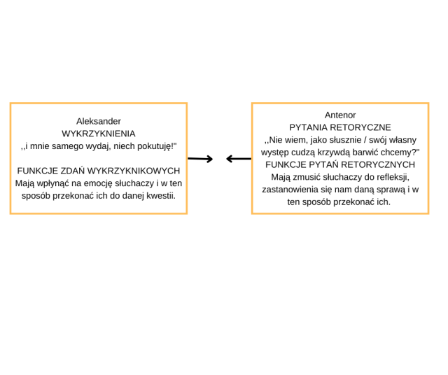 Na podstawie tekstu uzupełnij schemat, wpisując w wolne miejsce przykłady wymienionych środków występujące w wypowiedzi danego bohatera oraz ich funkcję.