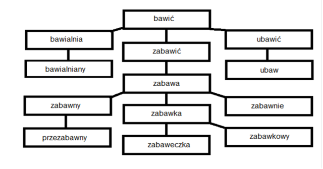 Wypełnij brakujące pola w schemacie rodziny wyrazów.