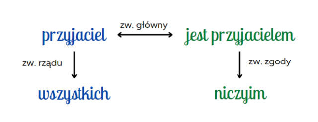 Rozrysuj wykresy wypisanych zdań, a następnie, tak jak na przedstawionym wzorze, określ związki wyrazowe.