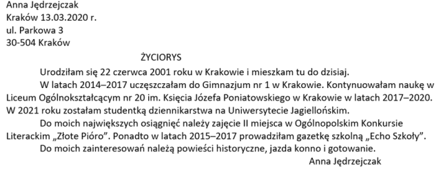 W tym ćwiczeniu musisz wybrać informacje spośród podanych i zredagować życiorys.