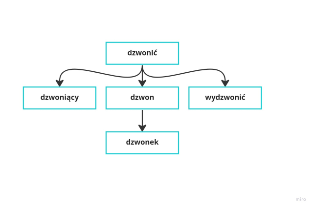 Drugi schemat: dzwon – dzwonić – dzwonek – dzwoniący – wydzwonić
