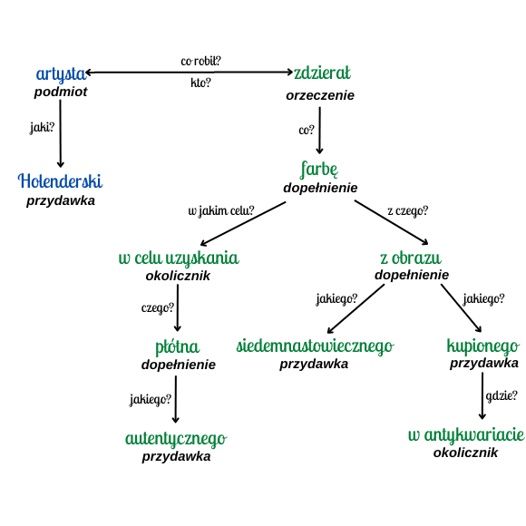 Zdania pojedyncze można przedstawić za pomocą wykresu zdania. W przypadku, gdy mamy do czynienia z wielowyrazowymi określeniami z nazwą własną lub związkiem frazeologicznym, musimy potraktować je jako jedną całość.