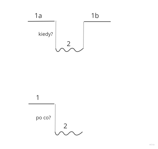 - Nazajutrz derwisz (1a), czekając na wieśniaków (2), obmyślał plan przemowy (1b).