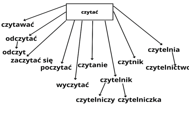 Wyrazy utworzone od innych słów nazywa się pochodnymi. Z kolei słowa, od których je utworzono to wyrazy podstawowe.