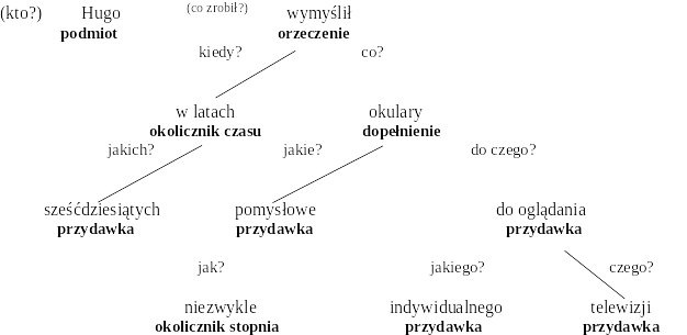 Przy tworzeniu wykresów należy pamiętać o naczelnych zasadach przy ich tworzeniu: grupa podmiotu zazwyczaj poprzedza grupę orzeczenia oraz określenia z grupy podmiotu powinny znajdować się przy podmiocie, a z grupy orzeczenia przy orzeczeniu. Możemy wyróżnić okoliczniki: miejsca (gdzie, dokąd, skąd?), czasu (kiedy?, od kiedy? Do kiedy?, sposobu (jak? W jaki sposób?), celu (po co? W jakim celu?), przyczyny (dlaczego?, z jakiego powodu?) , przyzwolenia (wbrew czemu?), stopnia (jak bardzo?), warunku (pod jakim warunkiem?).