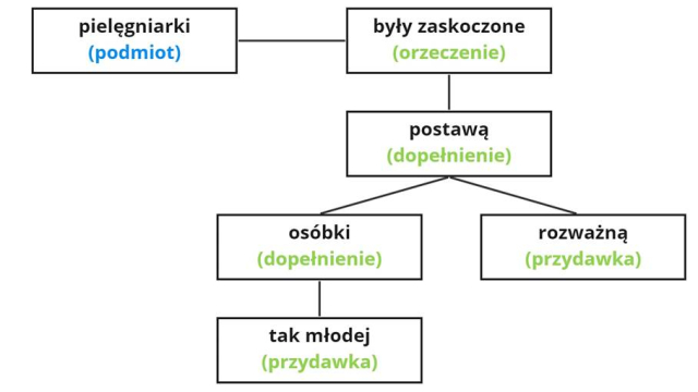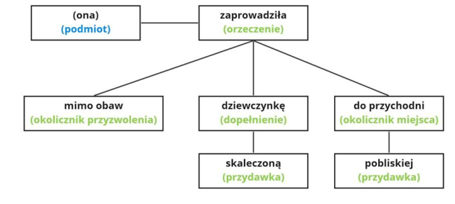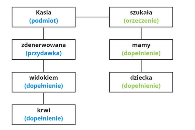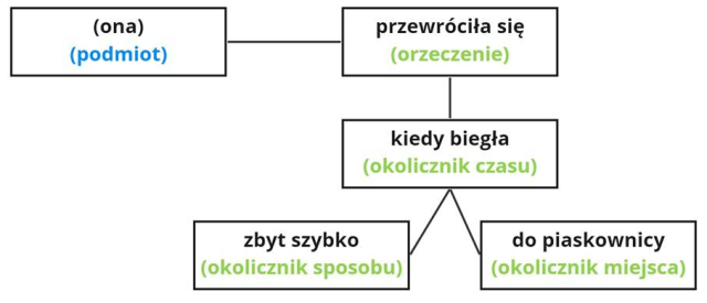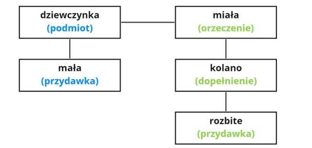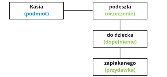 Wykres zdania polega na wskazaniu podmiotu i orzeczenia oraz ich określeń.