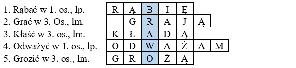 Rozwiąż krzyżówkę czasownikami w czasie teraźniejszym, następnie zapisz hasło.