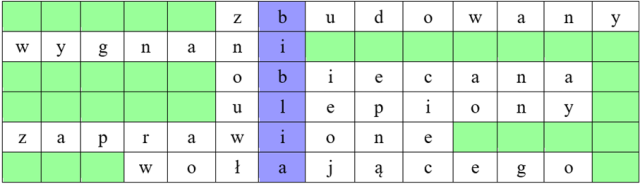 Uzupełnij diagram imiesłowami ze związków frazeologicznych w kolejności występowania. Hasłem jest źródło zapisanych frazeologizmów.
