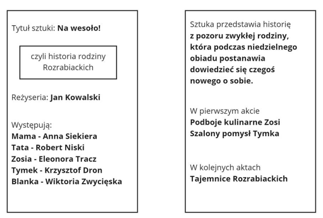 W tym ćwiczeniu musisz stworzyć krótki opis spektaklu dotyczącego twojej rodziny.