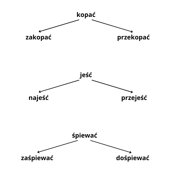 Do podanych czasowników dopisz po dwa w formie niedokonanej.
