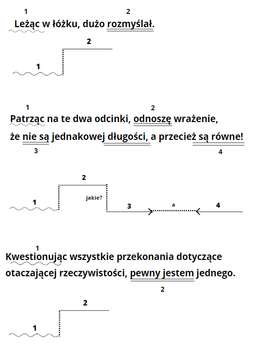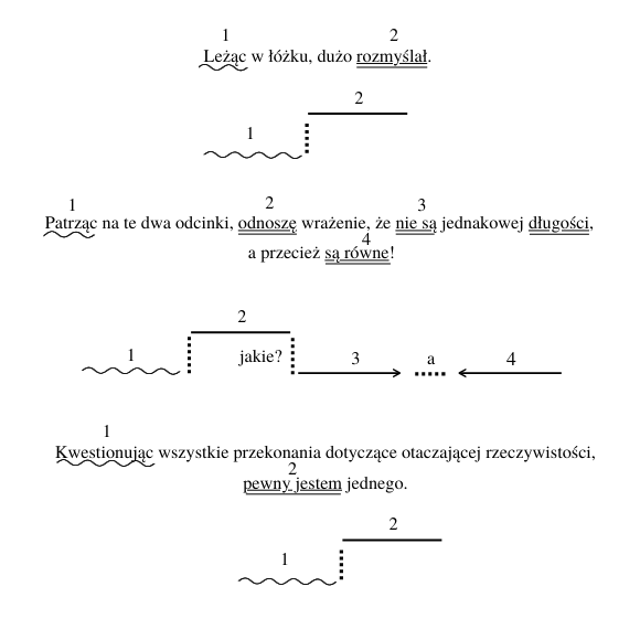 Imiesłowowy równoważnik zdania zaznacza się na wykresie linią falistą.