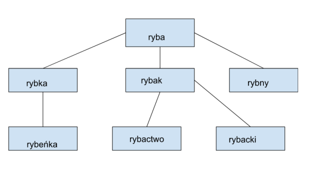 W tym zadaniu uzupełnij podany schemat wyrazami z ramki, przerysowując go do zeszytu. Na samej górze schematu wpisz wyraz niepodzielny słowotwórczo.