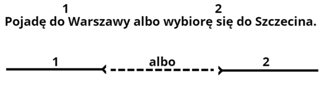 – zdanie rozłączne (treści obu zdań wykluczają się),