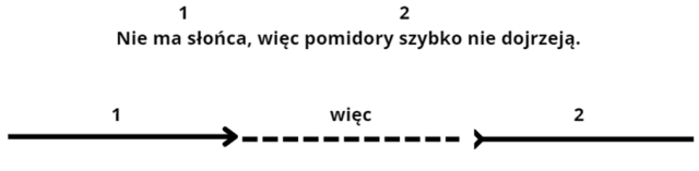 – zdanie wynikowe (treść jednego zdania wynika z drugiego),