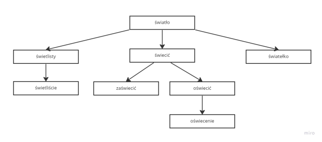 A. światło, świateł–ko, świec–ić, za–świecić, o–świecić, oświec–enie, świetl–isty, świetl–iście. Rdzeń: świat